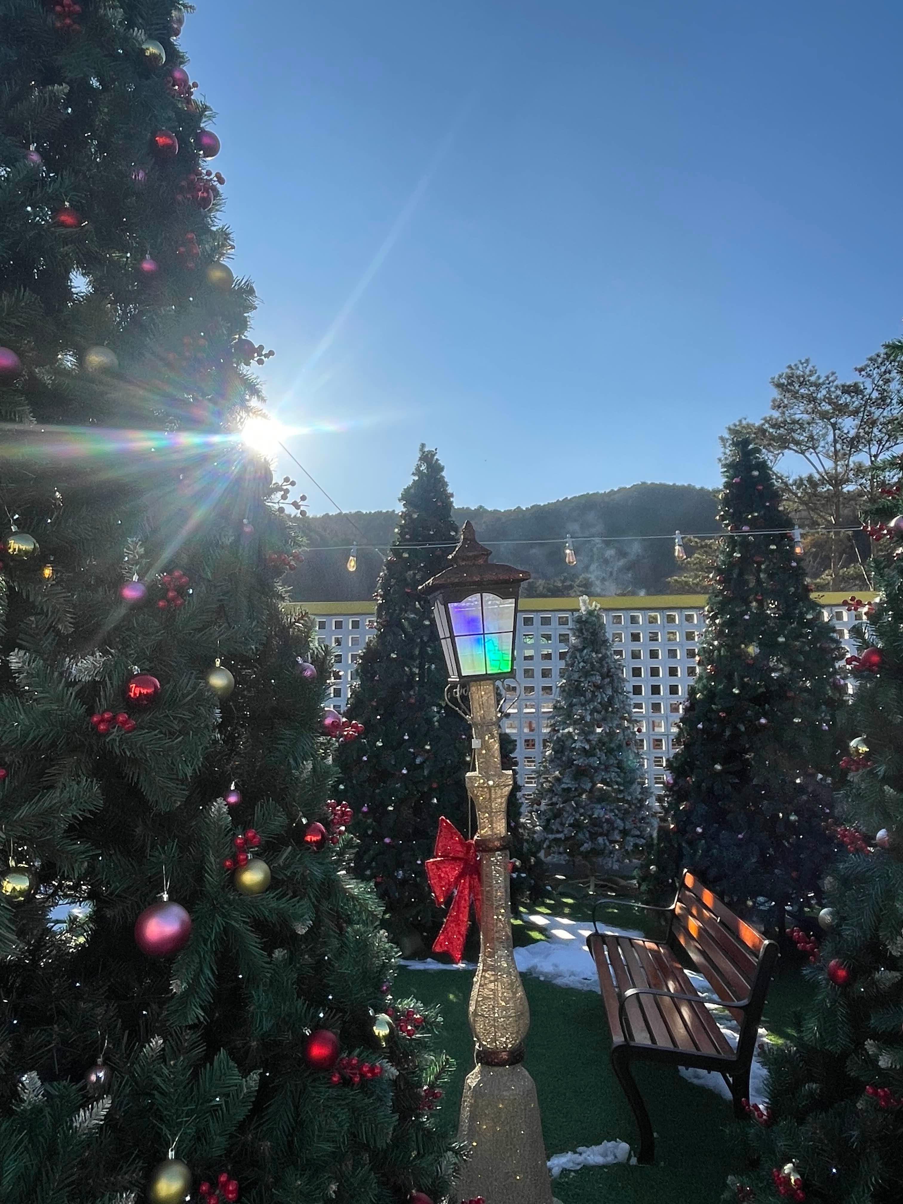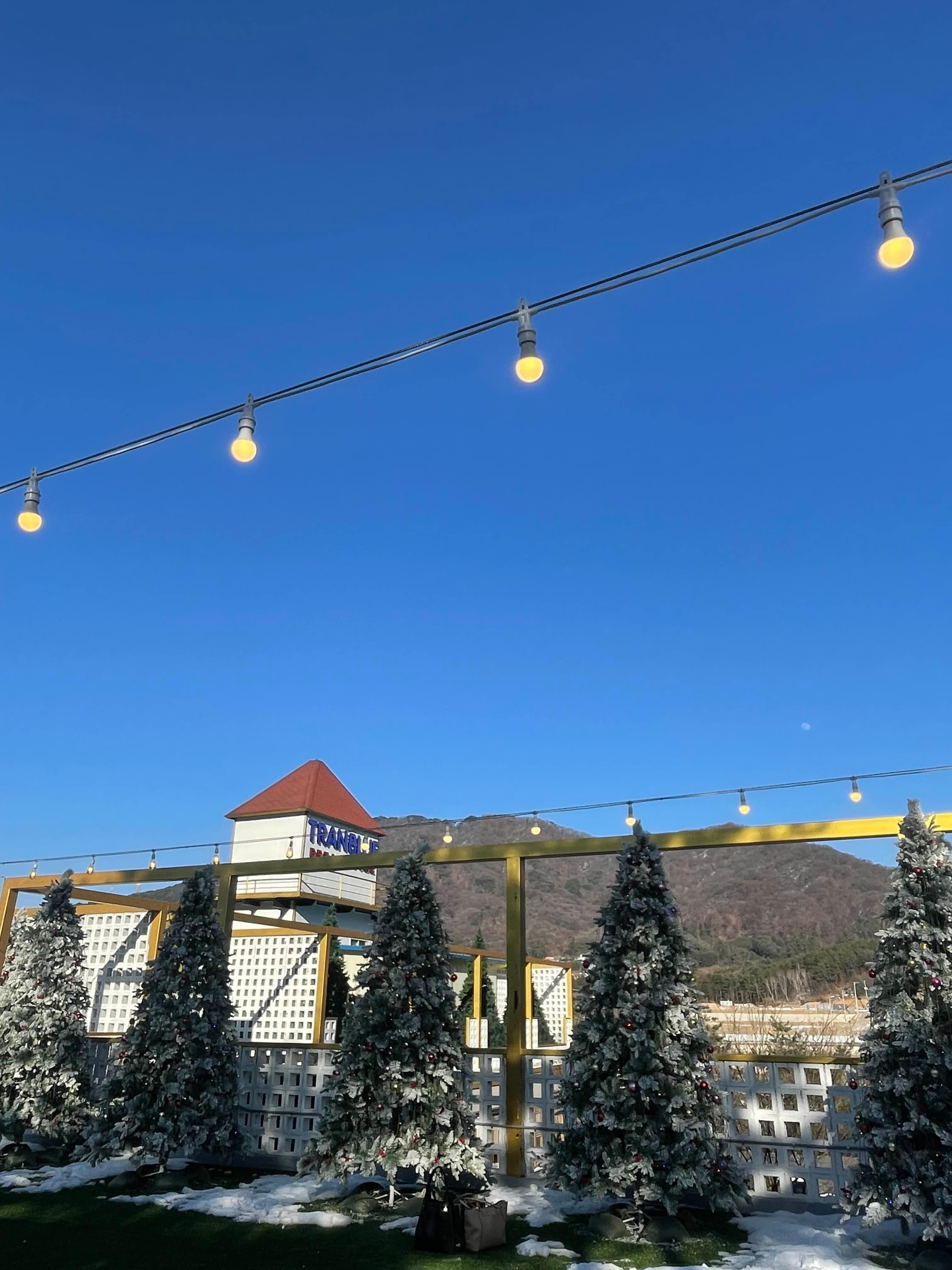 조명으로 둘러쌓인 나무들 속에 흡연공간도 있답니다!