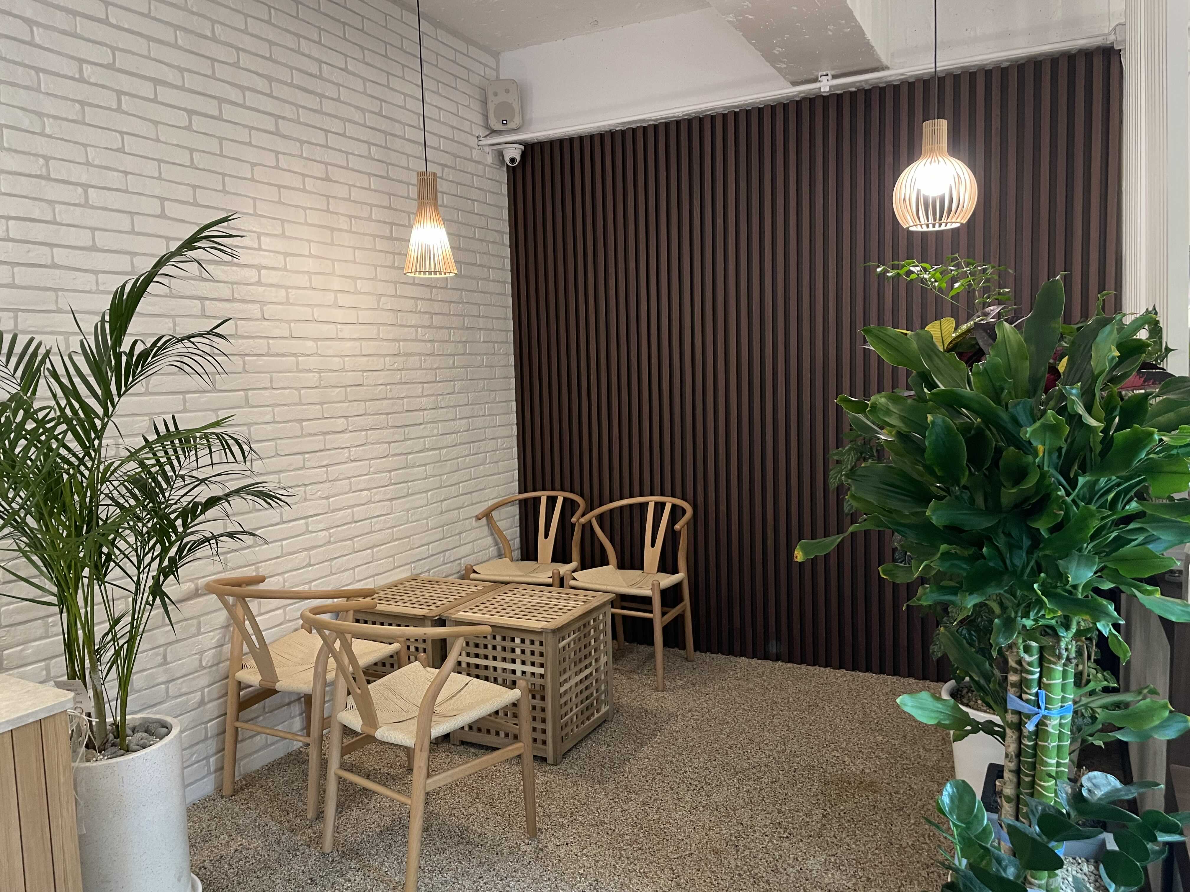 들어가면 넓은 거실처럼 느껴지는 공간과 따뜻한 나무 가구들이 곳곳에 배치되어 있었어요